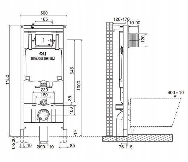 Stelaż podtynkowy OLI 80 nadaje się do montażu na płytach kartonowo gipsowych, z ścianami nośnymi. Główną zaletą jest łatwość i szybkość bezpiecznego montażu z spłuczką podwieszaną. Montaż może wykonać jedna osoba, co pozwala na szybkie i precyzyjne wypoziomowanie ramy.